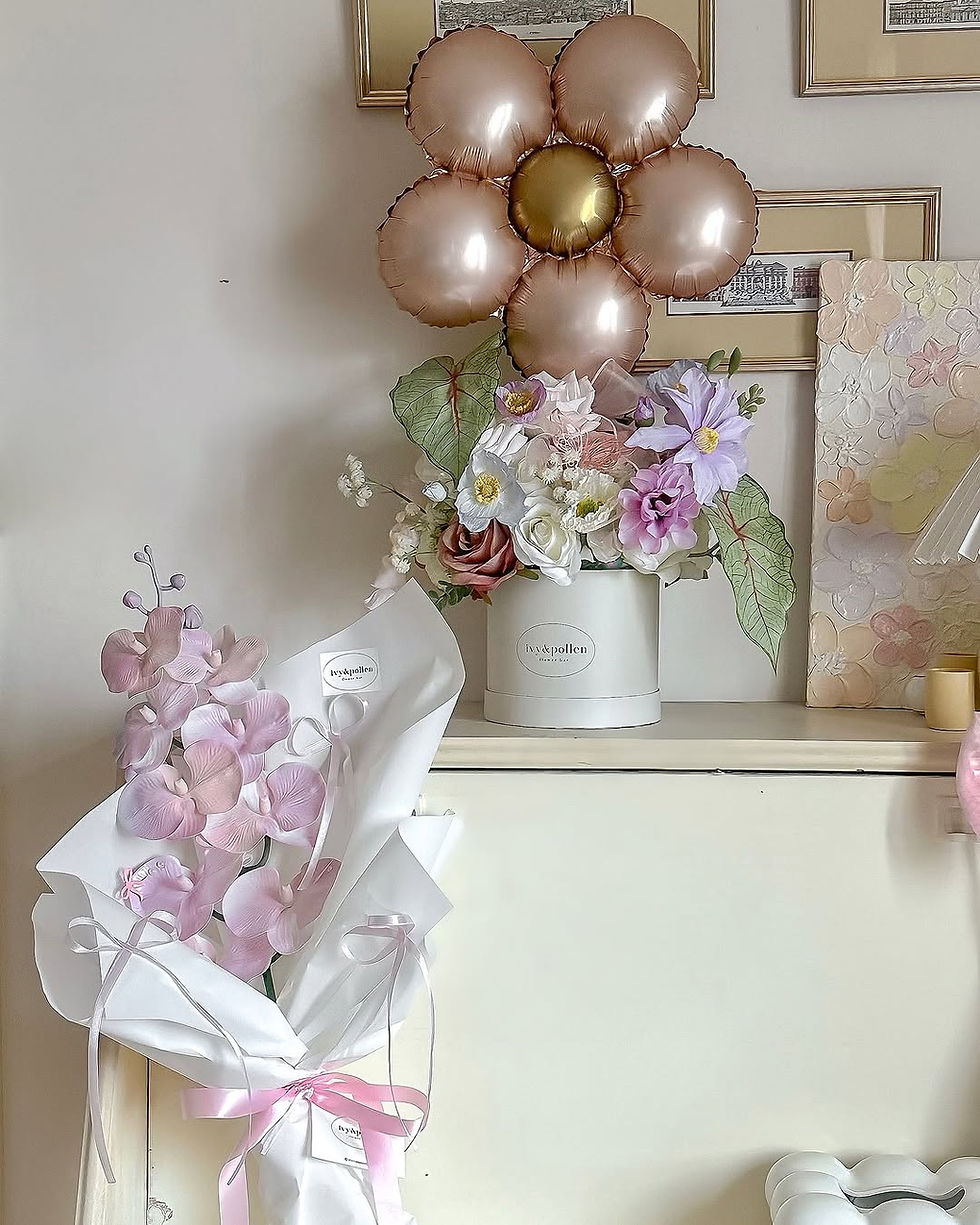 ช่อดอกไม้ประดิษฐ์สำหรับคนพิเศษในทุกๆโอกาสอันสำคัญ ไม่ว่าจะเป็นวันเกิด วันครบรอบ วันรับปริญญา หรือแสดงความยินดีในโอกาสต่างๆ ช่อดอกไม ้ของเรามีทั้งช่อขนาดเล็ก กลางและใหญ่ ลูกค้าสามารถเพิ่มดีเทลผีเสื้อ signature ของทางร้านได้ฟรีและปรับโทนสีดอกไม้ขนาดตามงบประมาณได้ เรามีโปรโมชั่นส่วนลดค่าส่งและจัดส่งฟรีเมื่อสั่งซื้อถึงยอดที่กำหนด สามารถสอบถามเพิ่มเติมกับทีมงานของเราได้ทางไลน